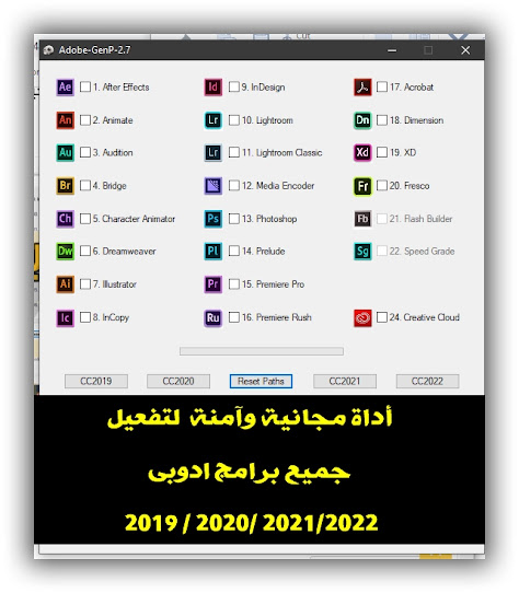 دي أقوى أداة مجانية وآمنة لتفعيل جميع برامج أدوبي Adobe CC لجميع الإصدارات: 2019، 2020، 2021، و2022 مدى الحياة.