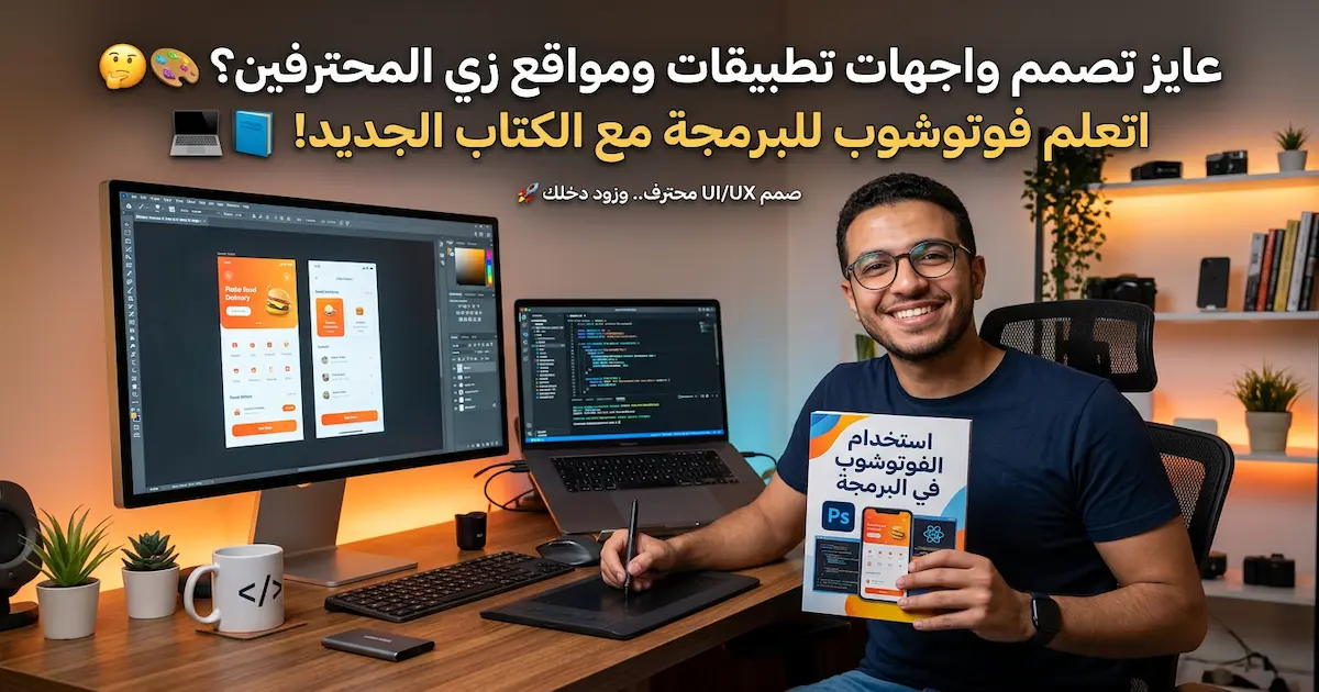 لو عايز تتعلم إزاي تستخدم Photoshop في تصميم واجهات التطبيقات والبرمجة، فـ الكتاب ده هيساعدك تفهم الأدوات وتقنيات التصميم بطريقة عملية وسهلة 💻✨