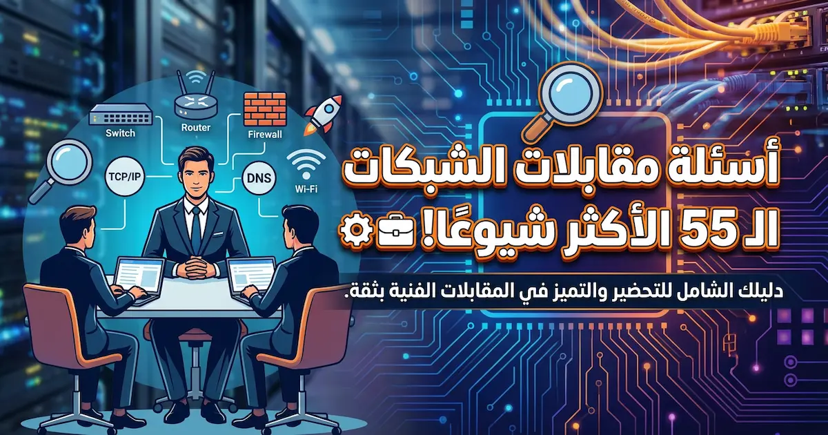 هل أنت مقبل على مقابلة عمل في مجال الشبكات؟ 💼هذا الدليل يجمع لك أكثر 55 سؤالًا شيوعًا تم طرحها فعليًا في المقابلات الفنية، لمساعدتك على الفهم العميق والاستعداد المثالي لأي اختبار أو مقابلة.