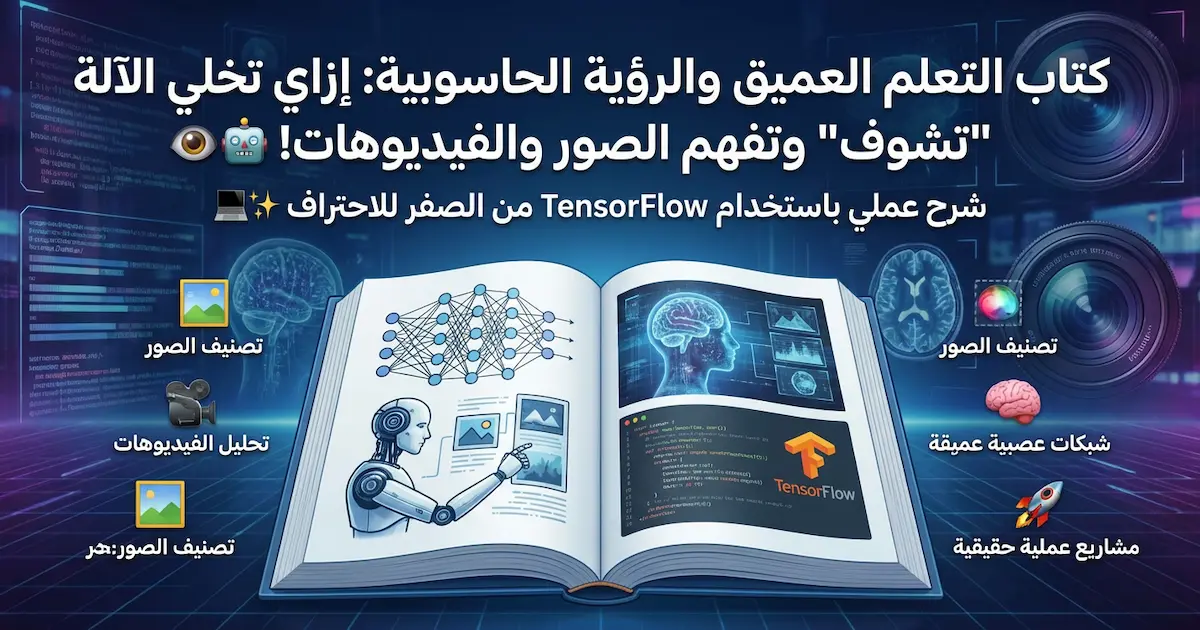 تعرف على كتاب التعلم العميق واستخداماته في الرؤية الحاسوبية باستخدام TensorFlow 🤖 الذي يشرح بأسلوب مبسط تطبيقات الذكاء الاصطناعي في تحليل الصور والفيديوهات عبر مشاريع عملية حقيقية.