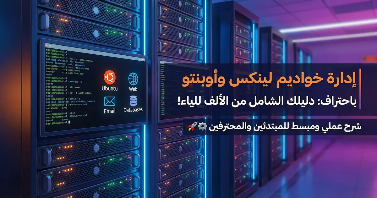 دليل شامل يشرح تثبيت وإدارة خواديم لينكس وأوبنتو باحتراف، يساعد القارئ العربي على فهم إدارة الخواديم وتطبيق الخدمات الأساسية بسهولة وأمان ⚙️💻