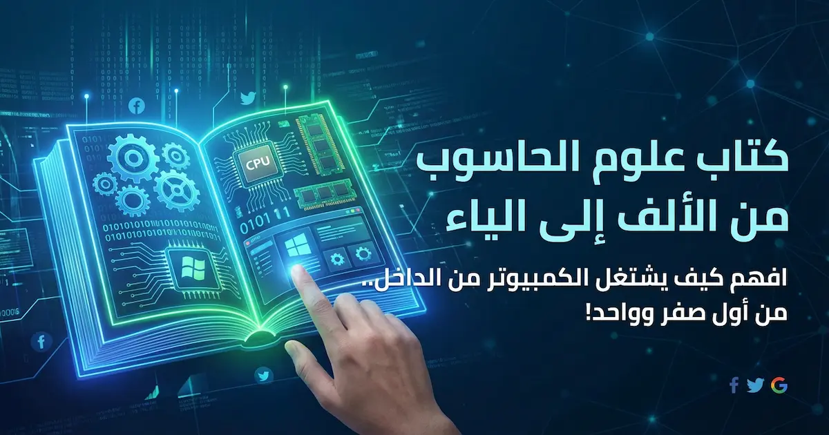 كتاب "علوم الحاسوب من الألف إلى الياء" يشرح ببساطة كيف يشتغل الكمبيوتر من الداخل، من تخزين البيانات لحد أنظمة التشغيل والمعالجات، خطوة بخطوة 💻