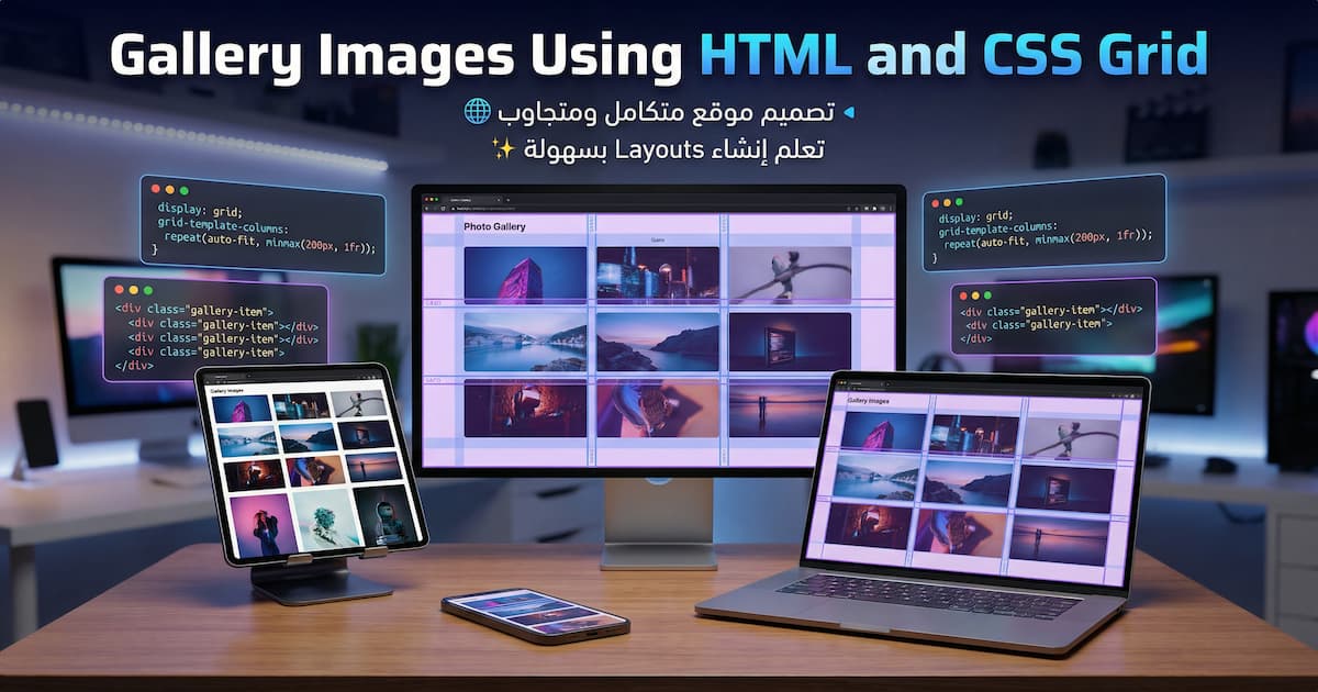 باختصار، لو عايز تتعلم تصميم مواقع متكاملة ومتجاوبة بشكل عملي واحترافي، مشروع Gallery Images Using HTML and CSS Grid ده هيساعدك تتقن كل حاجة بسهولة 😎