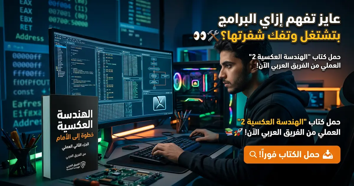تحميل كتاب 'الهندسة العكسية خطوة إلى الأمام' - الجزء الثاني العملي للمهتمين بالهندسة العكسية مع أمثلة وشروحات من الفريق العربي. حمل وابدأ التعلم الآن. 🔍📚
