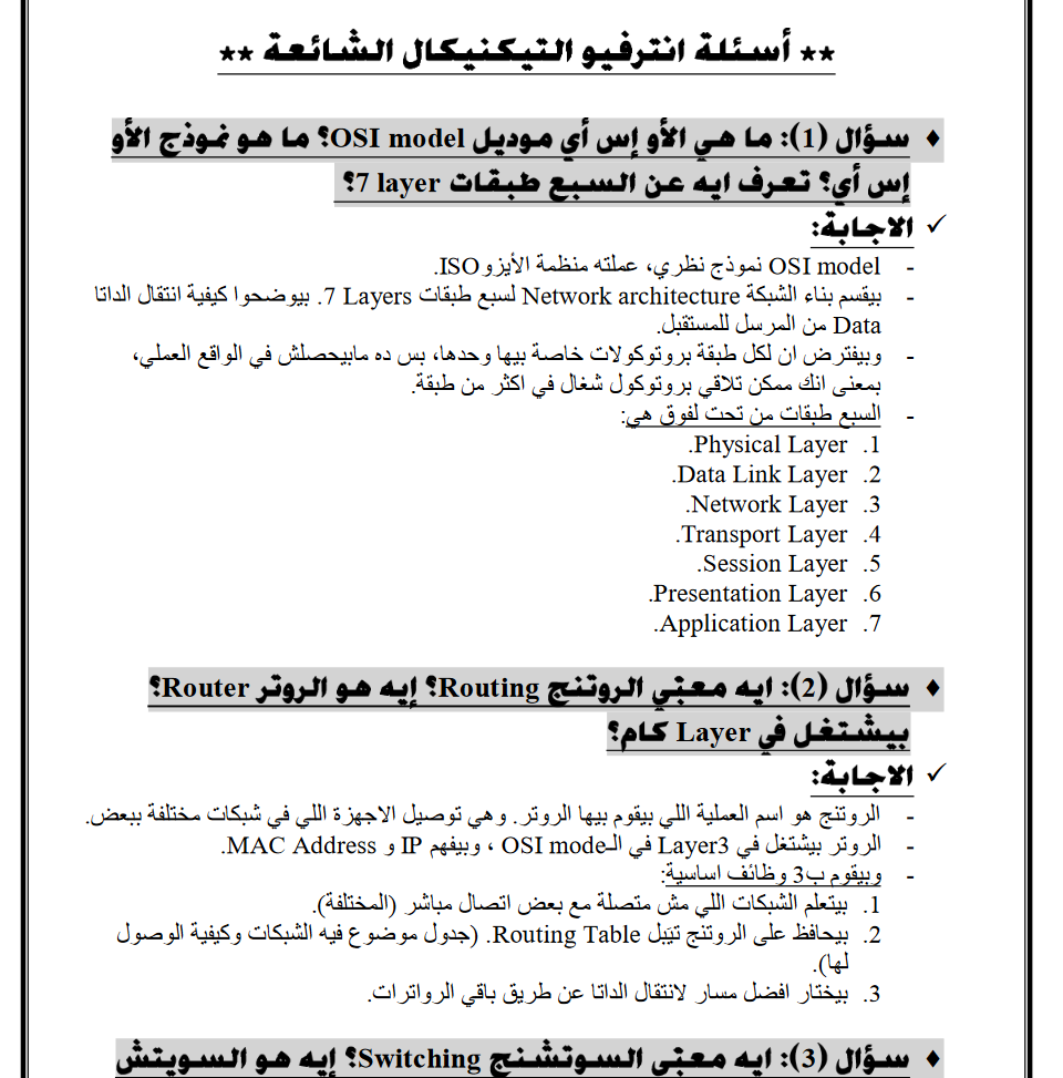 دليلك الأمثل للتحضير لمقابلات الشبكات والدعم الفني عبر 55 سؤالًا مدروسًا يغطي كل ما تحتاجه لتنجح بثقة وتُظهر خبرتك بوضوح أمام لجنة المقابلة.
