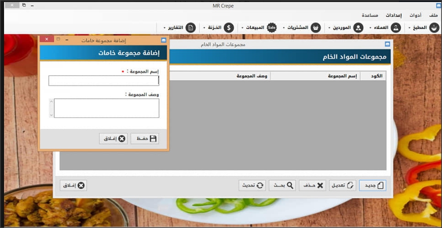 البرنامج بيشتغل على جهاز واحد أو على شبكة فيها أكتر من جهاز، وبيسهل كل العمليات اليومية:🔹 مجموعات الخامات