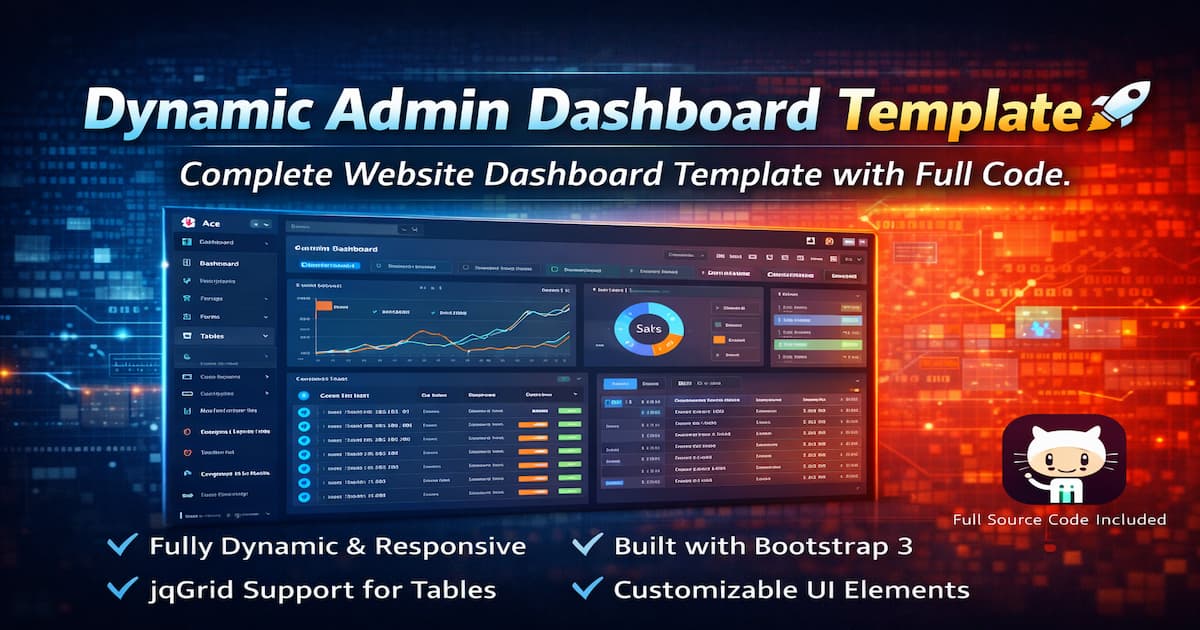 Download a fully dynamic admin dashboard website template with complete code for easy integration, customization, and management of your website’s UI/UX. Ready to use with Bootstrap 3.
