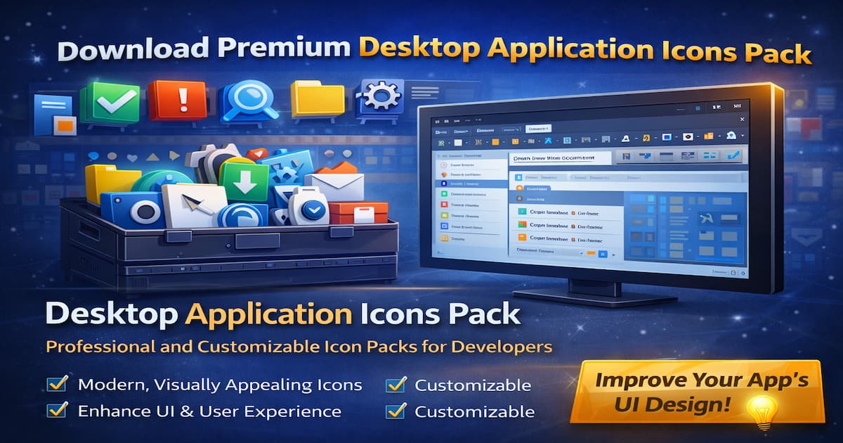 Download a premium icon pack for desktop application developers, featuring visually appealing and functional icons to enhance UI design and user experience.