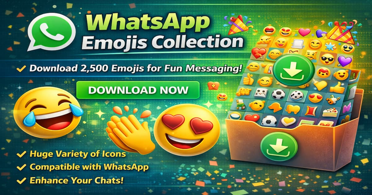 Download a collection of 2,500 WhatsApp emojis in one convenient file to make your chats more fun and expressive with a huge variety of icons.