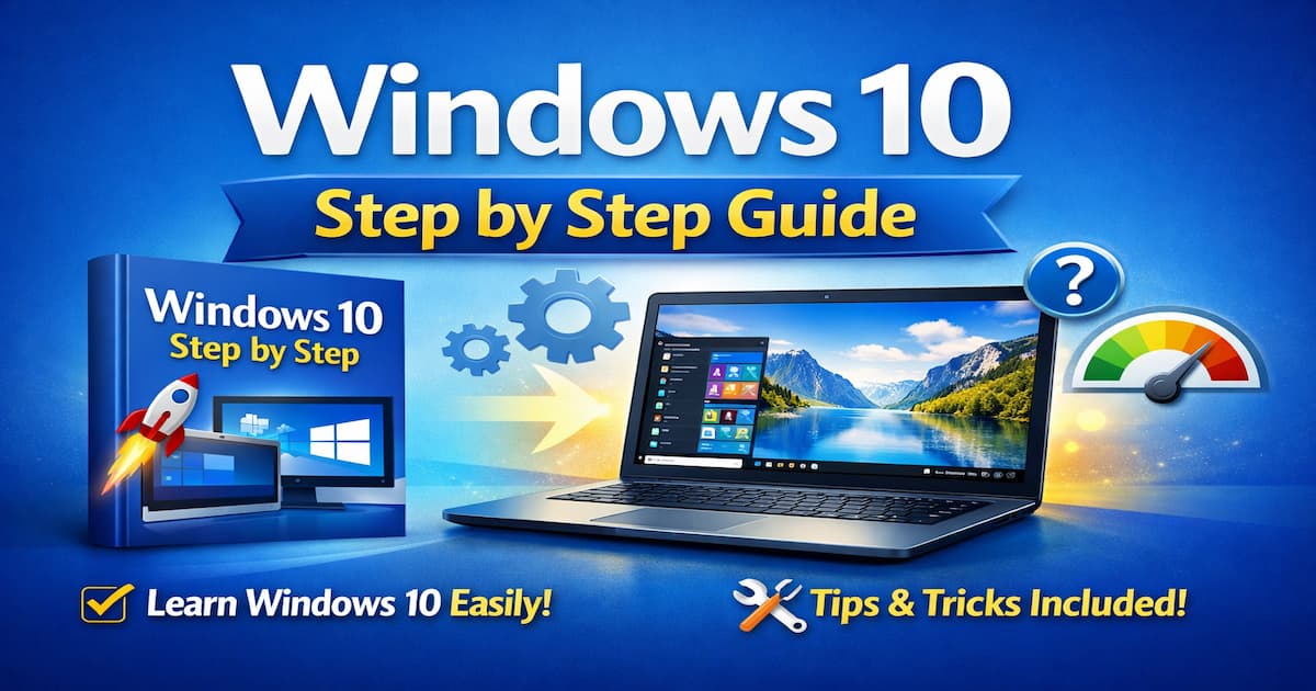 Download the Windows 10 Step By Step book - a complete guide for beginners to master Windows 10, from navigation and settings to optimization and troubleshooting.